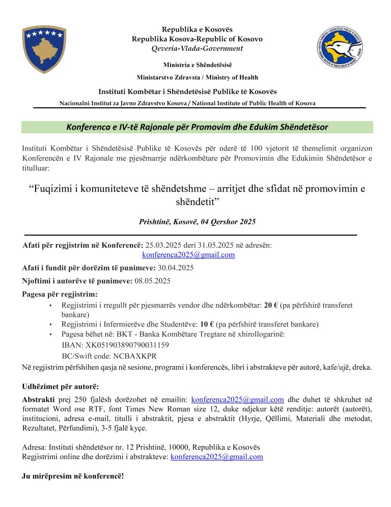 Në datat 27 dhe 28 mars 2025, në Universitetin e Prishtinës – Fakultetin e Mjekësisë dhe Fakultetin e Bujqësisë dhe Veterinarisë u mbajt punëtoria ndërdisiplinare “One Health” me pjesëmarrjen e ekspertëve nga Instituti Kombëtar i Shëndetësisë Publike të Kosovës, Universiteti i Prishtinës (Fakulteti i Mjekësisë dhe Fakulteti i Bujqësisë dhe Veterinarisë), Universiteti Justus Liebig nga […]